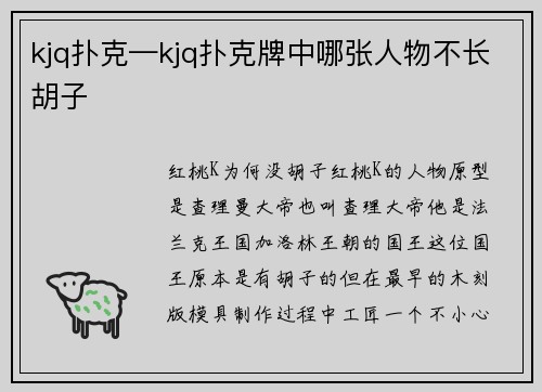kjq扑克—kjq扑克牌中哪张人物不长胡子
